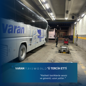 Yolculukları güvenli ve konforlu hale getirmek için sürekli olarak yenilikçi çözümler sunan Varan Turizm, araçlarının bakımında da özenli davranmaktadır. Bu doğrultuda lastik değişimi gibi önemli bir konuda, Trieworld markamızın hizmetlerinden yararlanmayı tercih etmiştir.